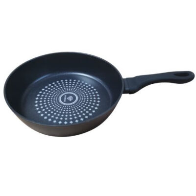 Универсальная кухонная сковорода поможет приготовить множество вкусных блюд – пожарить мясо, сосиски, рыбу, овощи и т.д. Корпус имеет отличные защитные качества от царапин и различных повреждений (но не рекомендуем использовать стальные лопатки и мыть сковороду с использованием скребка). Дно и стенки прогреваются за считанные минуты и обеспечивают отличную готовку пищи.