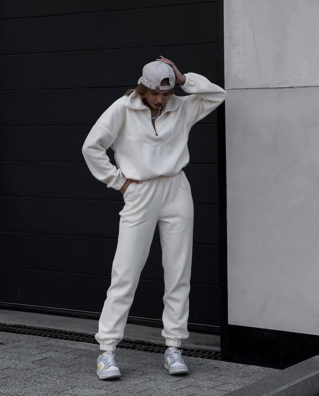 Спортивный женский флисовый костюм молоко