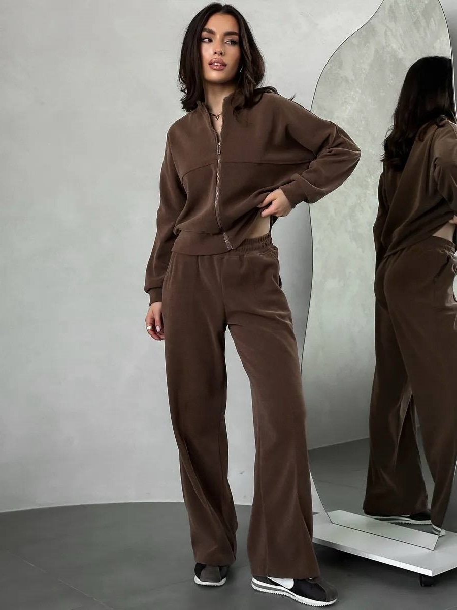 Спортивный костюм из вельвета на меху (кофта на молнии+брюки прямого кроя) шоколад