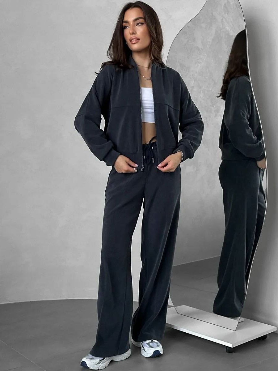 Спортивный костюм из вельвета на меху (кофта на молнии+брюки прямого кроя) графит