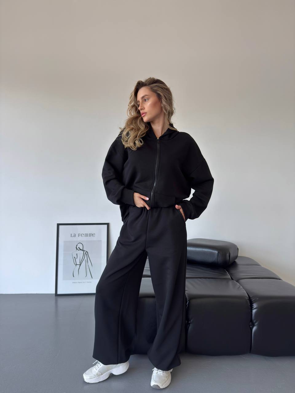 Спортивный костюм: кофта на молнии+штаны оверсайз черный