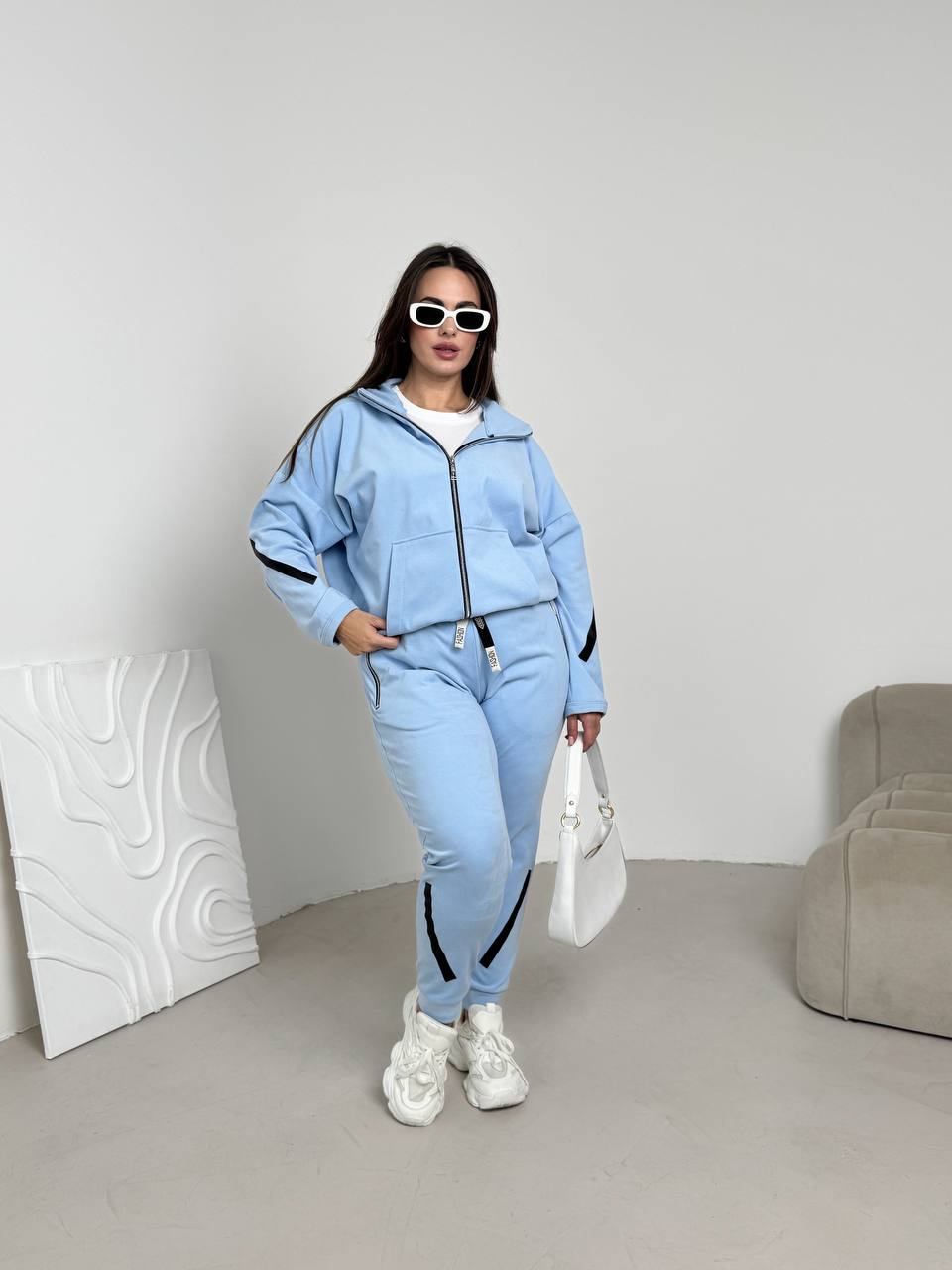 Брюки высокая посадка! ( карманы в боковых швах) + резинке и шнурок! Очень комфортный и крутой костюм. Декор полоски накат