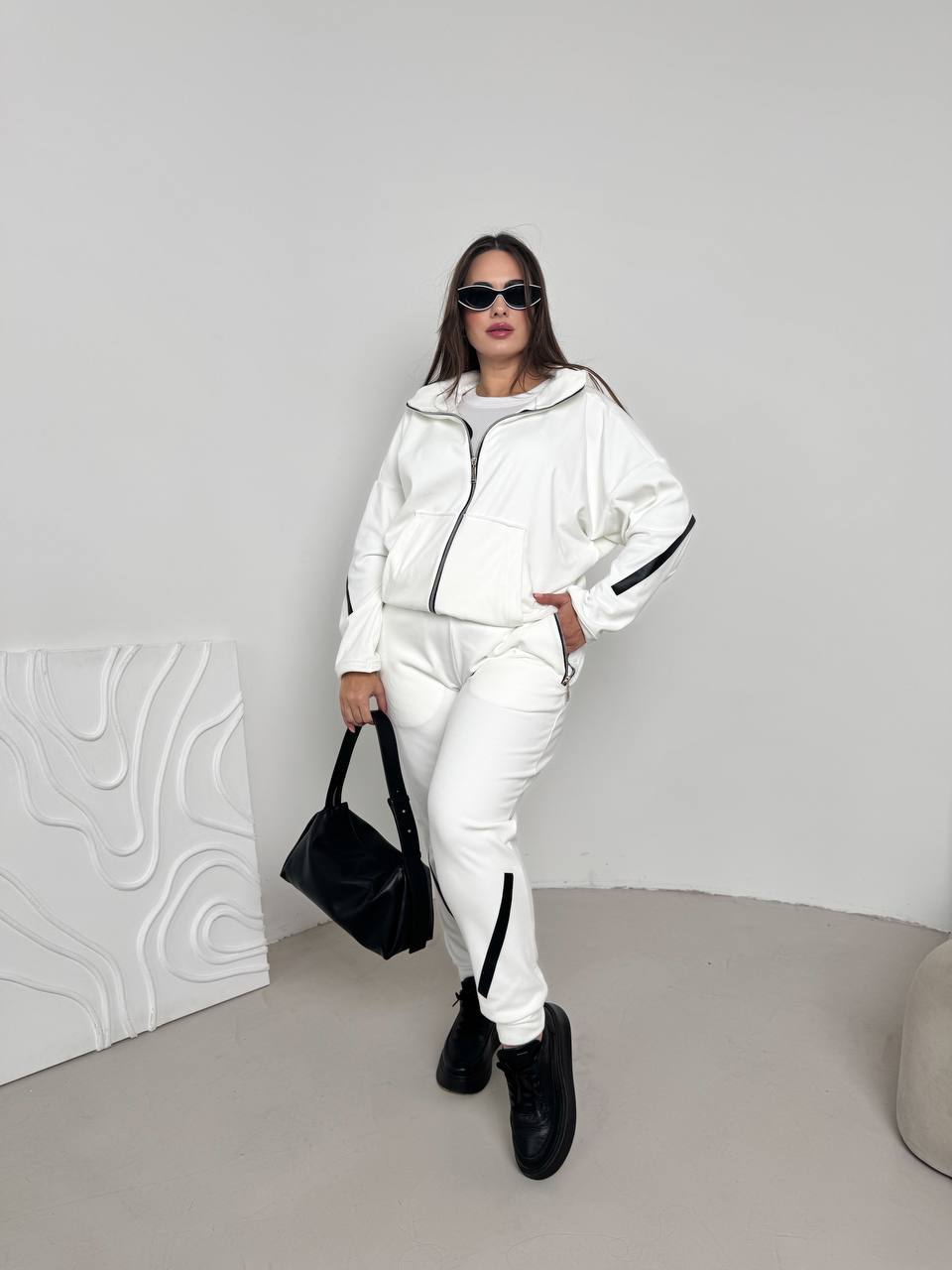 Брюки высокая посадка! ( карманы в боковых швах) + резинке и шнурок! Очень комфортный и крутой костюм. Декор полоски накат