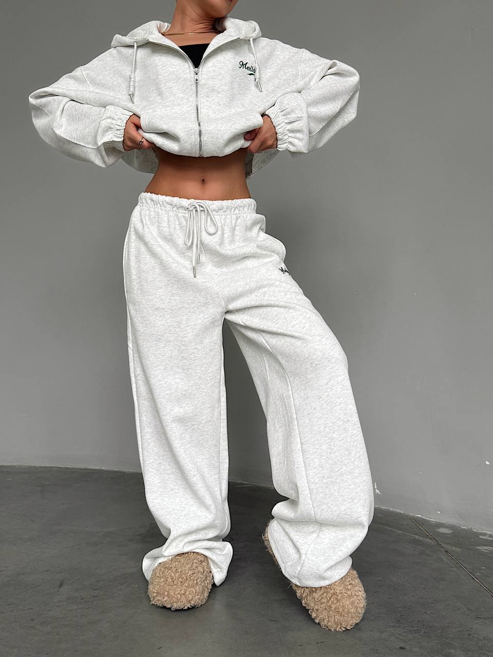 Спортивный костюм: оверсайз кофта+штаны серый меланж