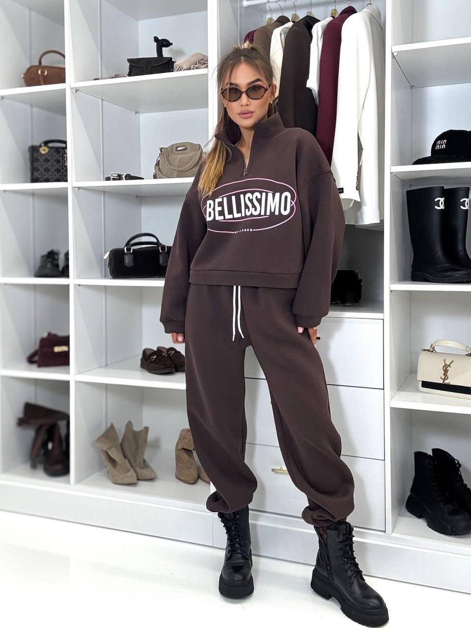 Спортивный костюм Оверсайз с накатом: кофта+штаны мокко