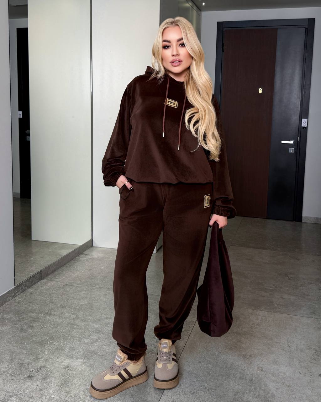 Спортивный костюм Оверсайз: Худи с затяжками по низу+штаны (велюр) шоколад