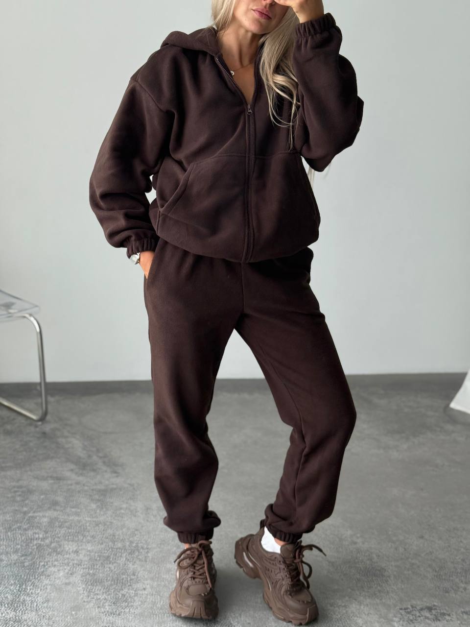 Головна » Магазин » ОДЕЖДА » ЖЕНСКИЕ СПОРТИВНЫЕ КОСТЮМЫ » Спортивный костюм плотный двусторонний флис, шоколад