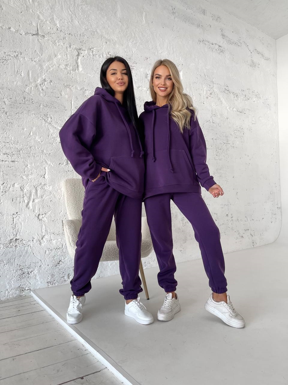 Спортивный костюм свободная кофта и штаны баклажан