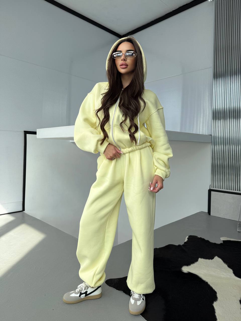 Спортивный костюм трехнитка (кофта с капюшоном на молнии+брюки свободные) лимон