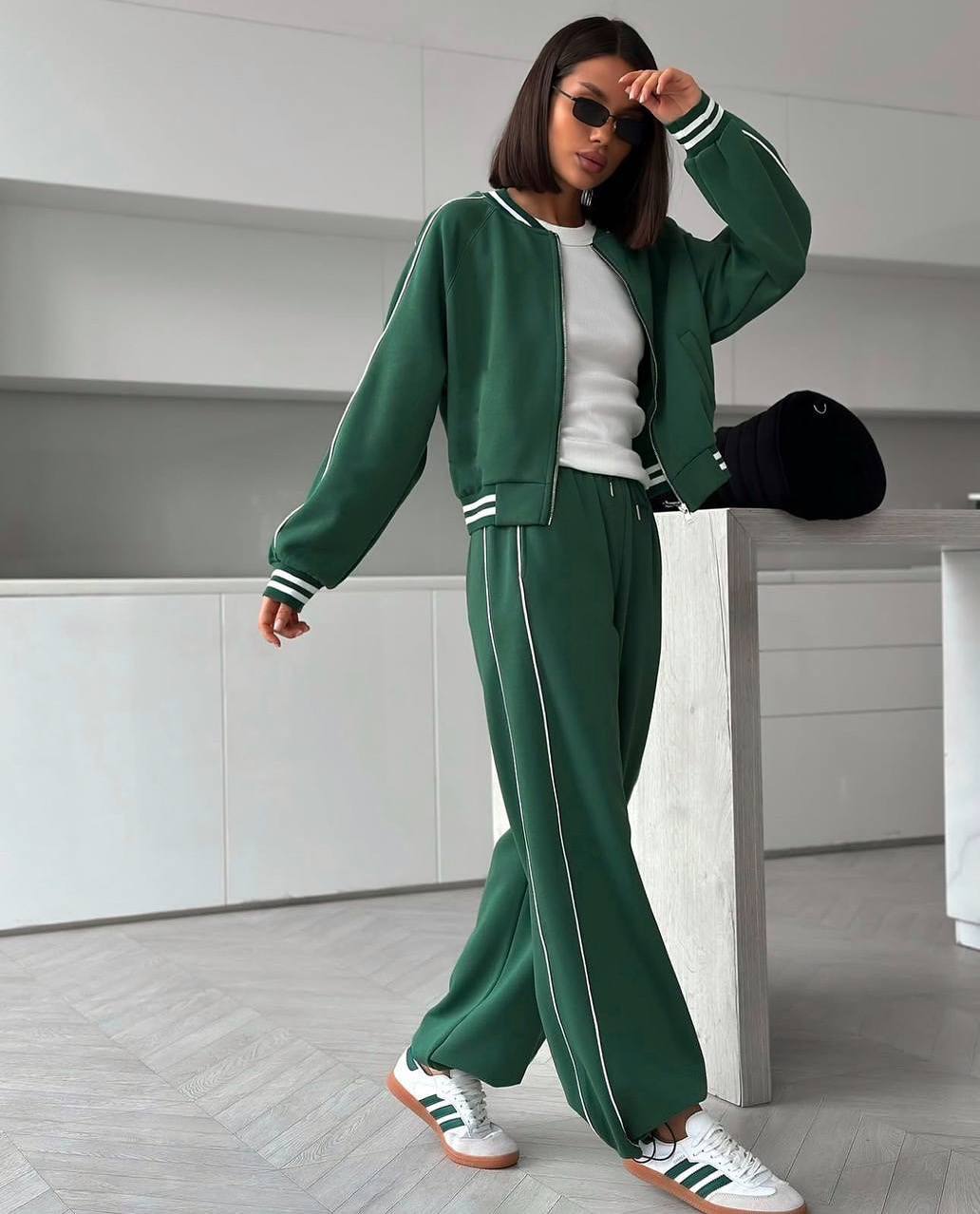 Головна » Магазин » ОДЕЖДА » ЖЕНСКИЕ СПОРТИВНЫЕ КОСТЮМЫ » Спортивный костюм трехнитка на флисе с кантом (кофта на молнии+брюки низ на кулиске) зеленый
