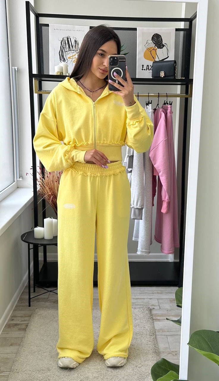 Головна » Магазин » ОДЕЖДА » ЖЕНСКИЕ СПОРТИВНЫЕ КОСТЮМЫ » Спортивный костюм (укороченнаякофта+брюки свободного кроя) лимон