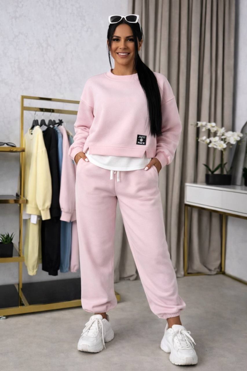 Спортивный костюм (укороченная кофта оригинального кроя+брюки низ на резинке) двухнитка пудра