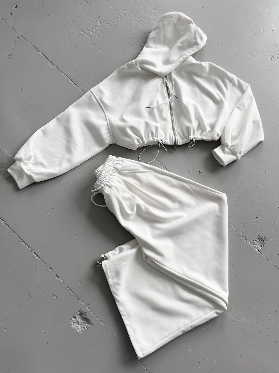 Головна » Магазин » ОДЕЖДА » ЖЕНСКИЕ СПОРТИВНЫЕ КОСТЮМЫ » Спортивный костюм (укороченная кофта на молнии по низу затяжка+свободные брюки) молочный