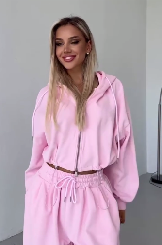 Головна » Магазин » ОДЕЖДА » ЖЕНСКИЕ СПОРТИВНЫЕ КОСТЮМЫ » Спортивный костюм (укороченная кофта на молнии по низу затяжка+свободные брюки) барби