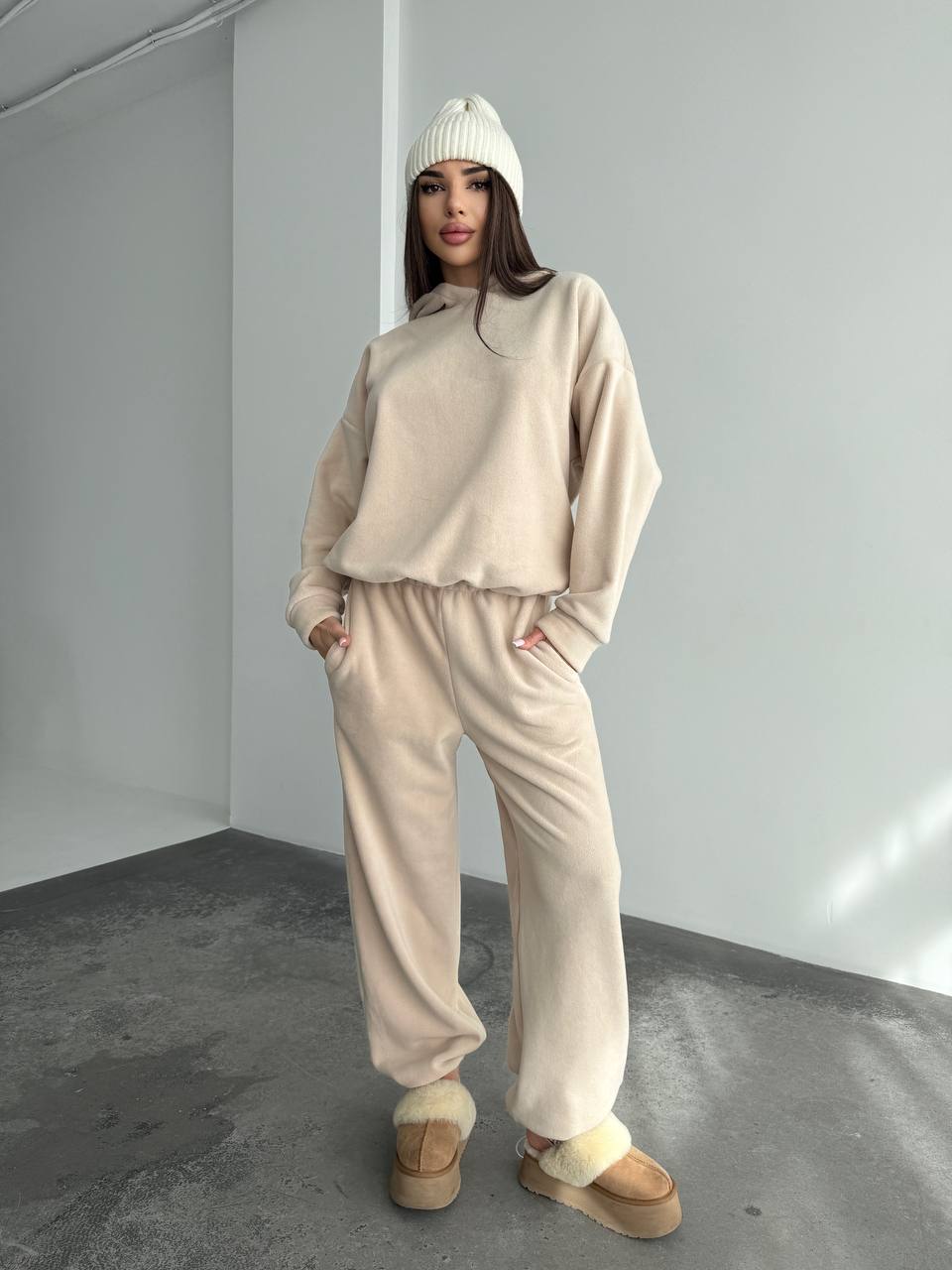 Спортивный костюм: штаны и кофта снизу на фиксаторах (плюшевый дабл флис) бежевый