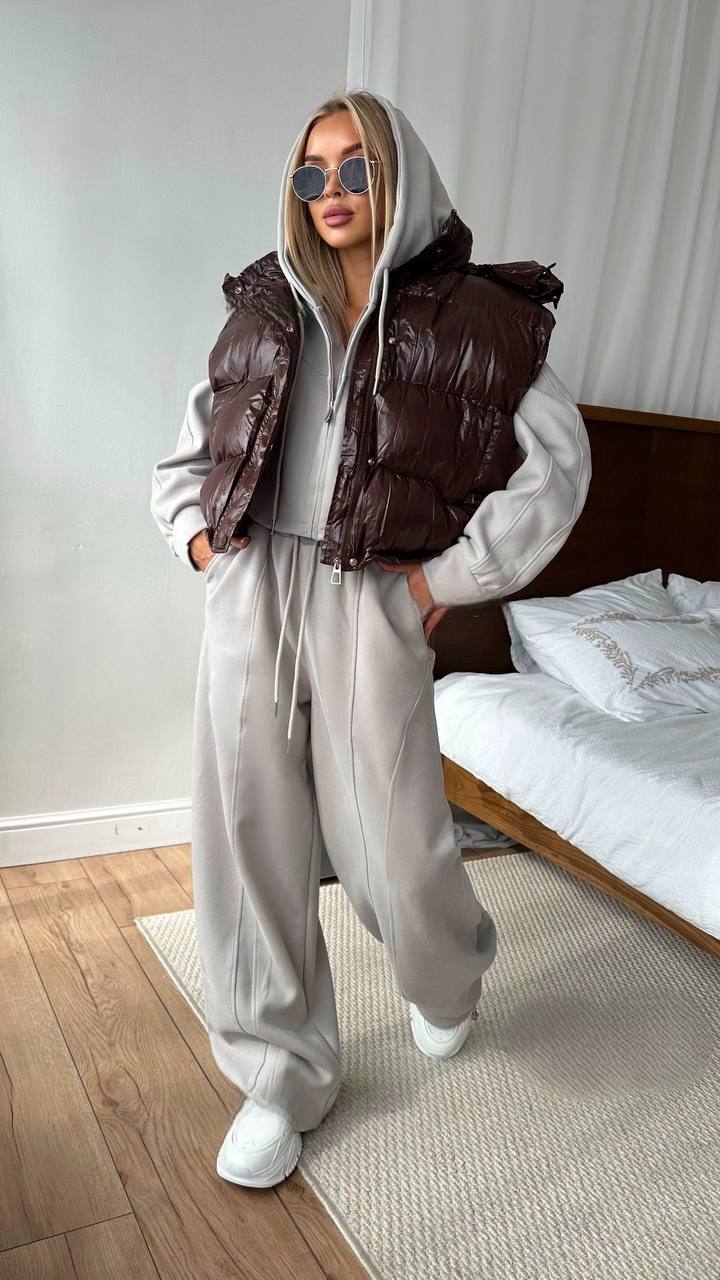 Головна » Магазин » ОДЕЖДА » ЖЕНСКИЕ СПОРТИВНЫЕ КОСТЮМЫ » Спортивный оверсайз костюм: кофта широкая+штаны с шнурком (трехнитка на флисе) серый