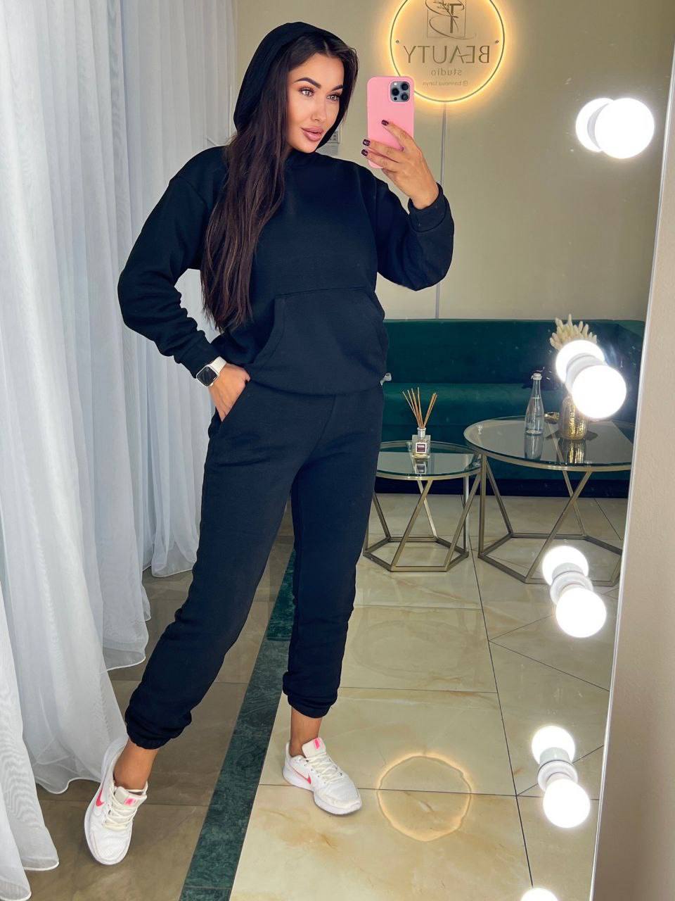 Спортивный (прогулочный) костюм Кофта кенгуру с капюшоном+Брюки на резинке черный