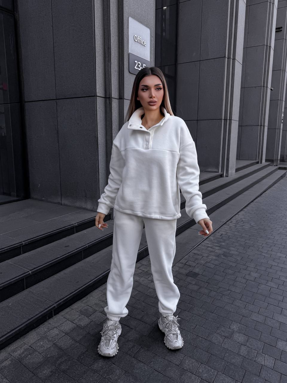 Головна » Магазин » ОДЕЖДА » ЖЕНСКИЕ СПОРТИВНЫЕ КОСТЮМЫ » Спортивный флисовый костюм: кофта с воротником на кнопках+штаны молоко
