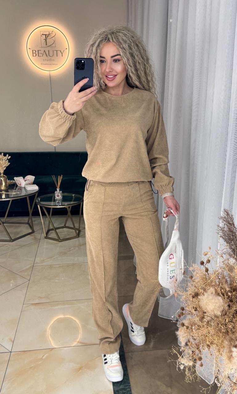 Головна » Магазин » ОДЕЖДА » ЖЕНСКИЕ КОСТЮМЫ » Стильный вельветовый костюм (кофта+брюки со стрелками) бежевый