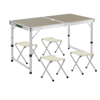 С регулировкой высоты на 3 уровня (550 / 620 / 700 мм) и 4 складными стульями, которые удобно прячутся внутрь конструкции стола, этот комплект легко транспортировать и хранить.