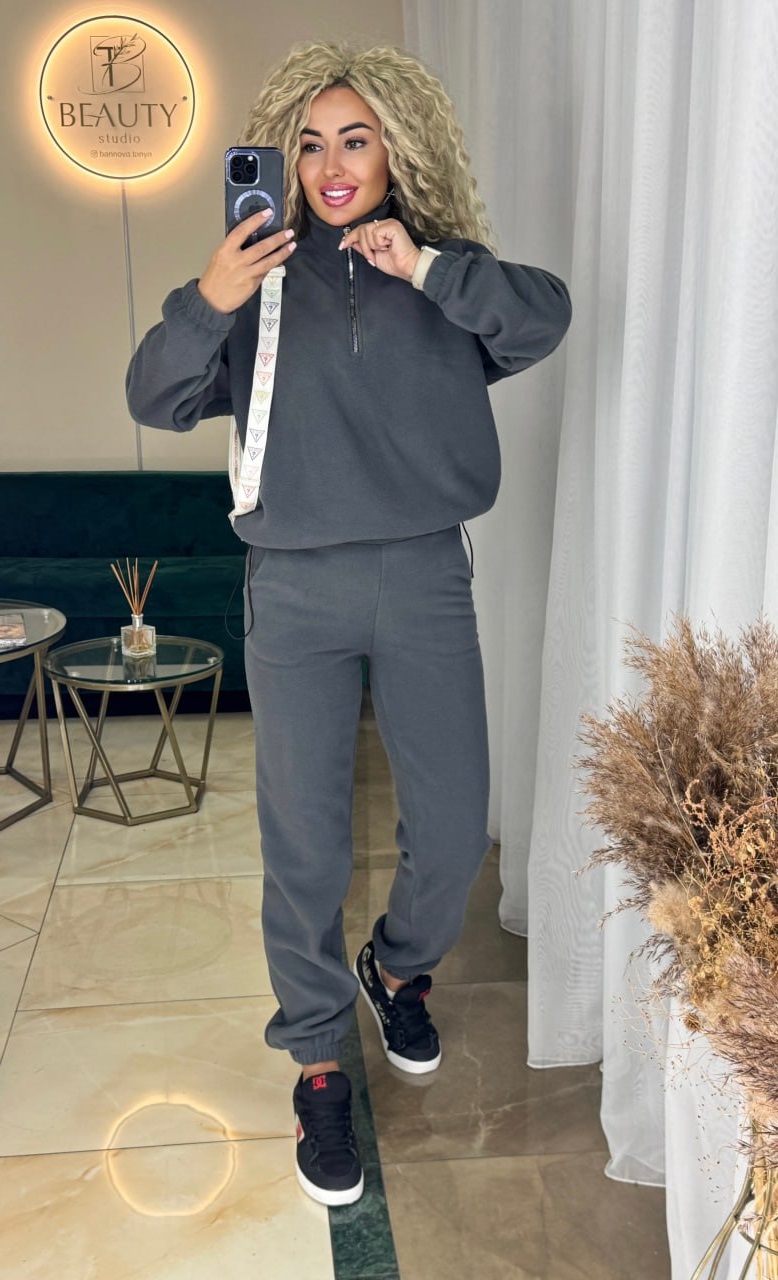 Теплый костюм (брюки манжеты на резинке+кофта по низу резинка) графит