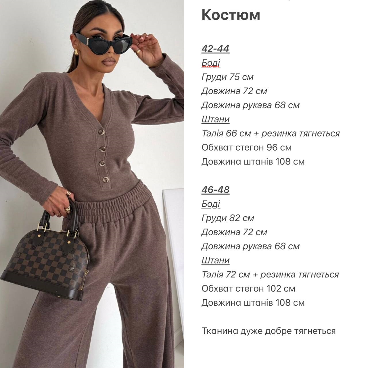 Костюм ( брюки и боди) Цвета: мокко, черный, графит Ткань: двухсторонняя Ангора Размеры: 42-44, 46-48