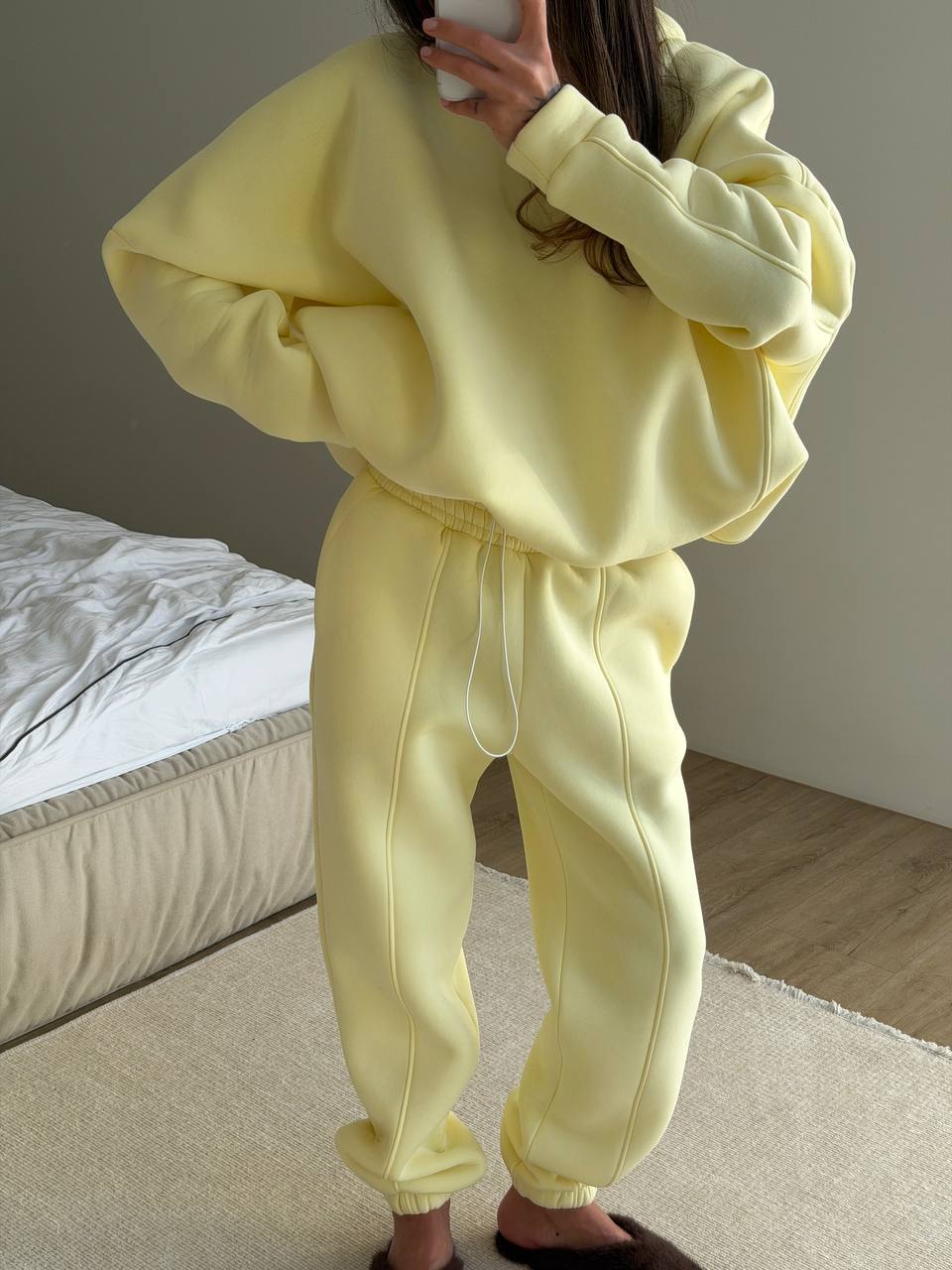 Теплый костюм из трехнитки (кофта с капюшоном+брюки со срелками+низ на резинке) лимон