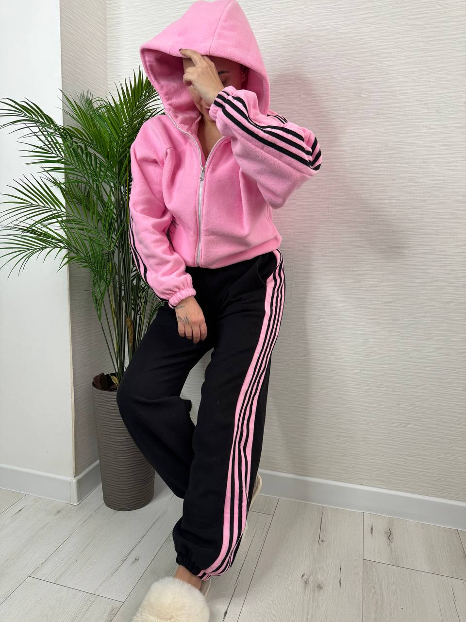 Будьте первым, кто оставил отзыв на “Теплый костюм с лампасами из флиса (брюки высокая посадка+кофта с капюшоном) розовый с черным”