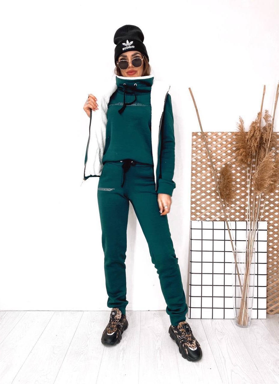 Головна » Магазин » ОДЕЖДА » ЖЕНСКИЕ СПОРТИВНЫЕ КОСТЮМЫ » Теплый Костюм-тройка жилетка на меху+кофта+штаны бутылка