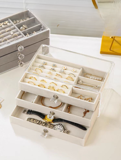 Он состоит из трех ящиков, которые позволяют разделить и организовать ваши украшения по типам, цвету или размеру.