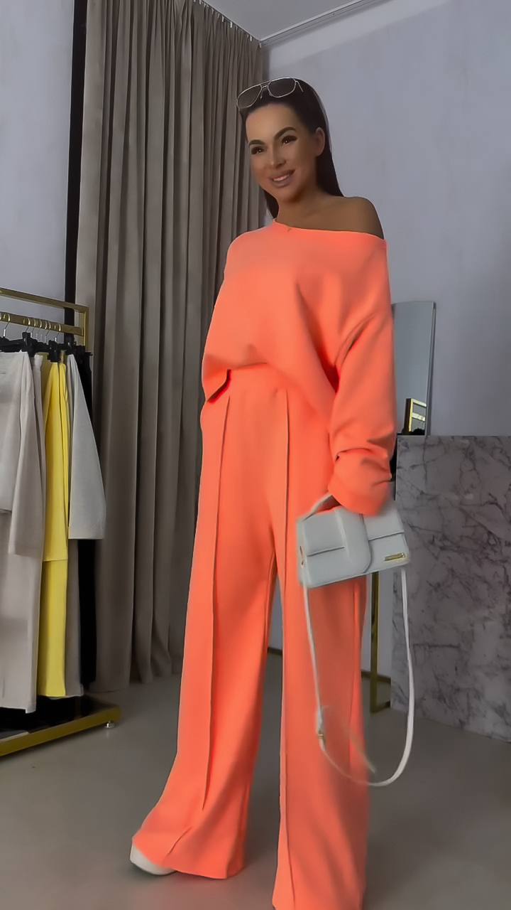 Трикотажный костюм (кофта свободного кроя+брюки с отстроченными стрелками) оранжевый
