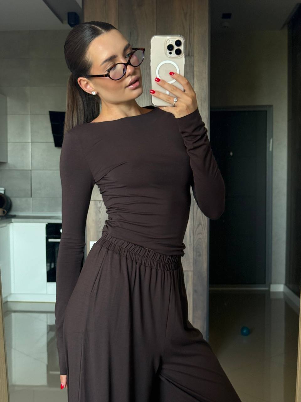 Головна » Магазин » ОДЕЖДА » ЖЕНСКИЕ КОСТЮМЫ » Трикотажный костюм (футболка+свободного кроя брюки) шоколад