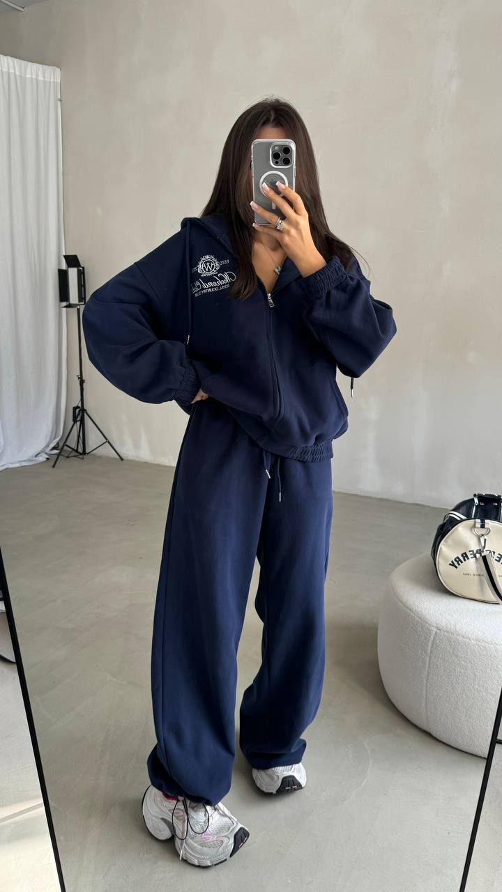 Трикотажный спортивный костюм (кофта на молнии с капюшоном+брюки по низу затяжке) синий