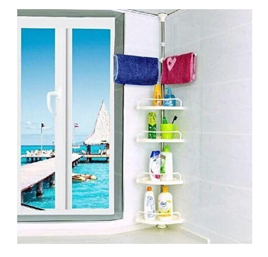 Полки для ванной Multi Corner Shelf, 4 уровня пластиковых полок для ванной. Длина штанги регулируется от 100 до 260 см. Полки по ней можно двигать выше- ниже.Для того чтобы гель для душа или шампунь всегда были под рукой, когда вы принимаете душ, достаточно установить небольшую полочку в ванной.