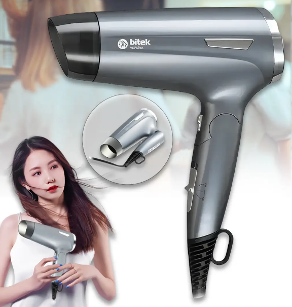 Складной фен BITEK BT-464 – это мощное и удобное устройство для сушки и укладки волос, созданное как для домашнего использования, так и для поездок.