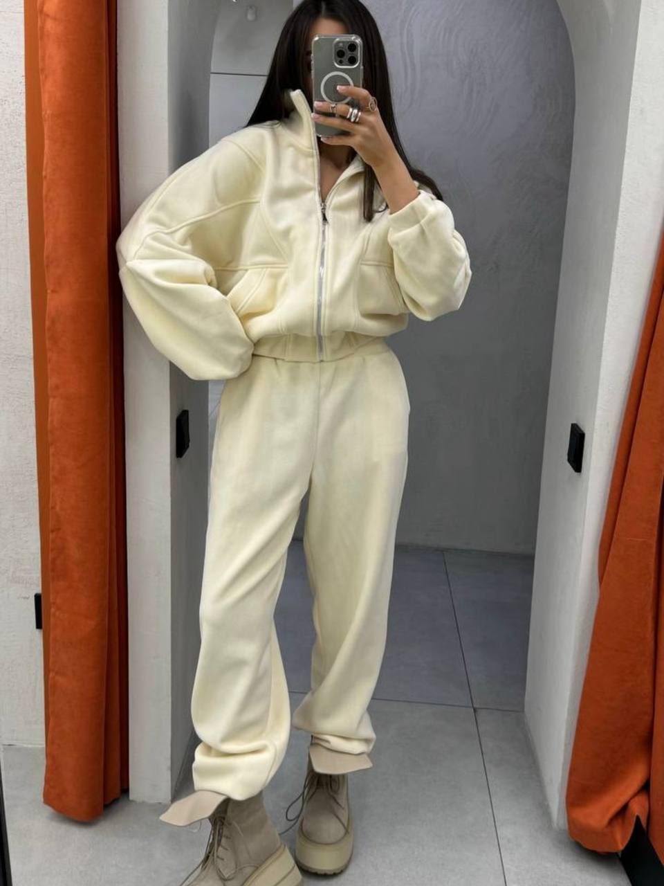 Будьте первым, кто оставил отзыв на “Флисовый костюм (кофта-бомбер на молнии+брюки-палаццо низ на кулиске) бежевый”