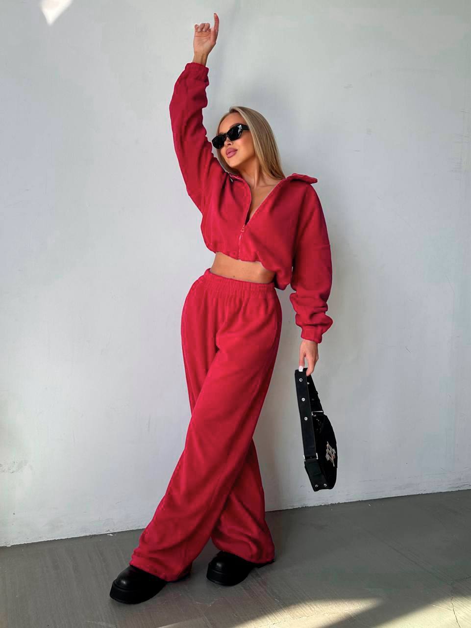 Флисовый костюм: Кофта и штаны на затяжках бордо