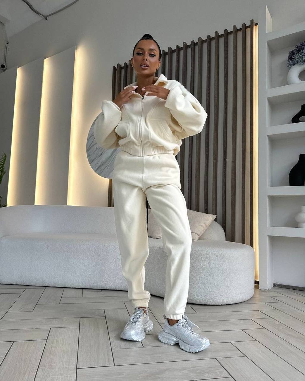 Флисовый костюм (кофта на молнии + штаны манжета на резинке) молочный