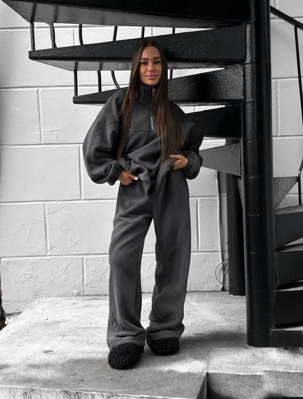 Флисовый костюм (худи+брюки свободного кроя) графит