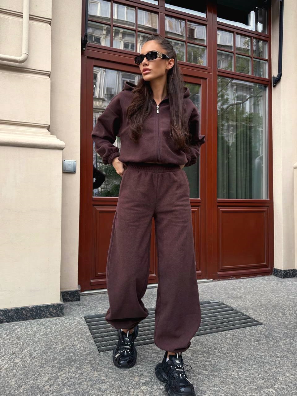 Флисовый костюм 2в1 (брюки палаццо + зип- худи) шоколад
