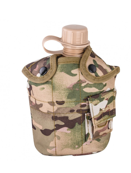 Фляга с кружкой по образцу экипировки американских солдат. Набор упакован в чехол с металлическими крючками в системе ALICE, что позволяет прикрепить его к рюкзаку или ремню. Крышка изготовлена из теплоизоляционного материала, помогающего поддерживать нужную температуру содержимого. Крышка фляги соединена с шейкой пластиковой ручкой, поэтому нет риска ее уронить или потерять. При необходимости соединение может быть открыто. Кружка имеет складную ручку. Он сделан из алюминия, что делает его легким и вместе со столовой образует целое. Из него можно пить, готовить или тушить.