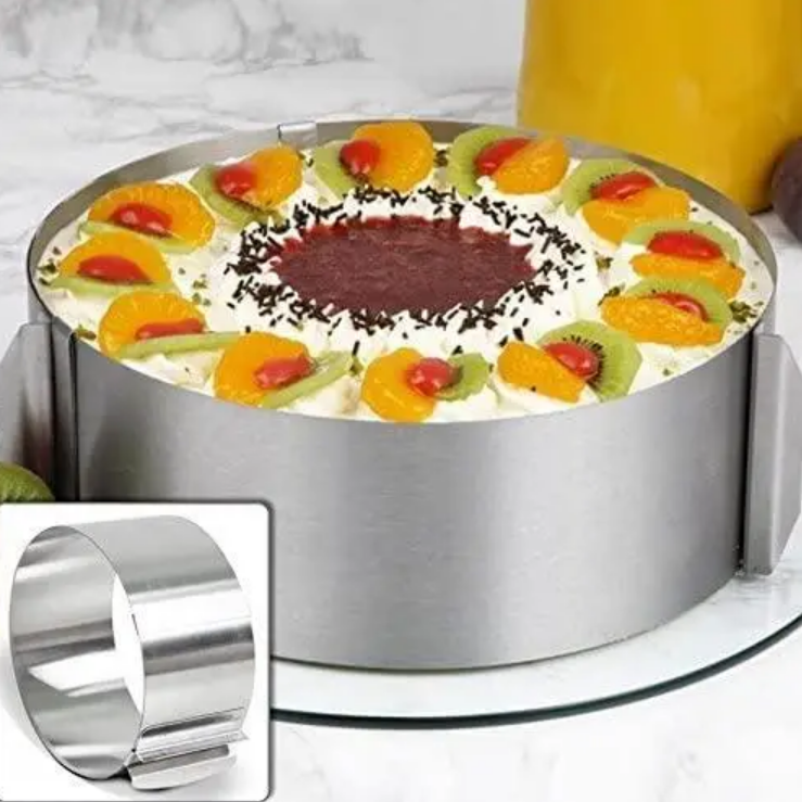 Форма для выпечки Cake Ring из нержавеющей стали со складными бортиками. Необходимая вещь для хозяек, которые часто готовят торты и другие кондитерские изделия. Предлагаемая модель выполнена из нержавеющей стали, экологичная, прочная и надежная.Раздвижная форма позволяет вместо целого комплекта форм различных размеров, приобрести одну, что экономит средства и место на полке. Может быть использована как форма для сборки тортов, форма для выпечки, форма для заливки желе, суфле и муссов, салатов и т.п.