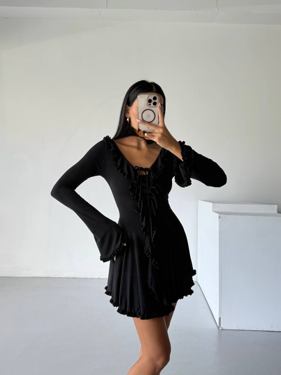 Головна » Магазин » ОДЕЖДА » ПЛАТЬЯ ТУНИКИ САРАФАНЫ » Эластичное Платье с рюшами черный