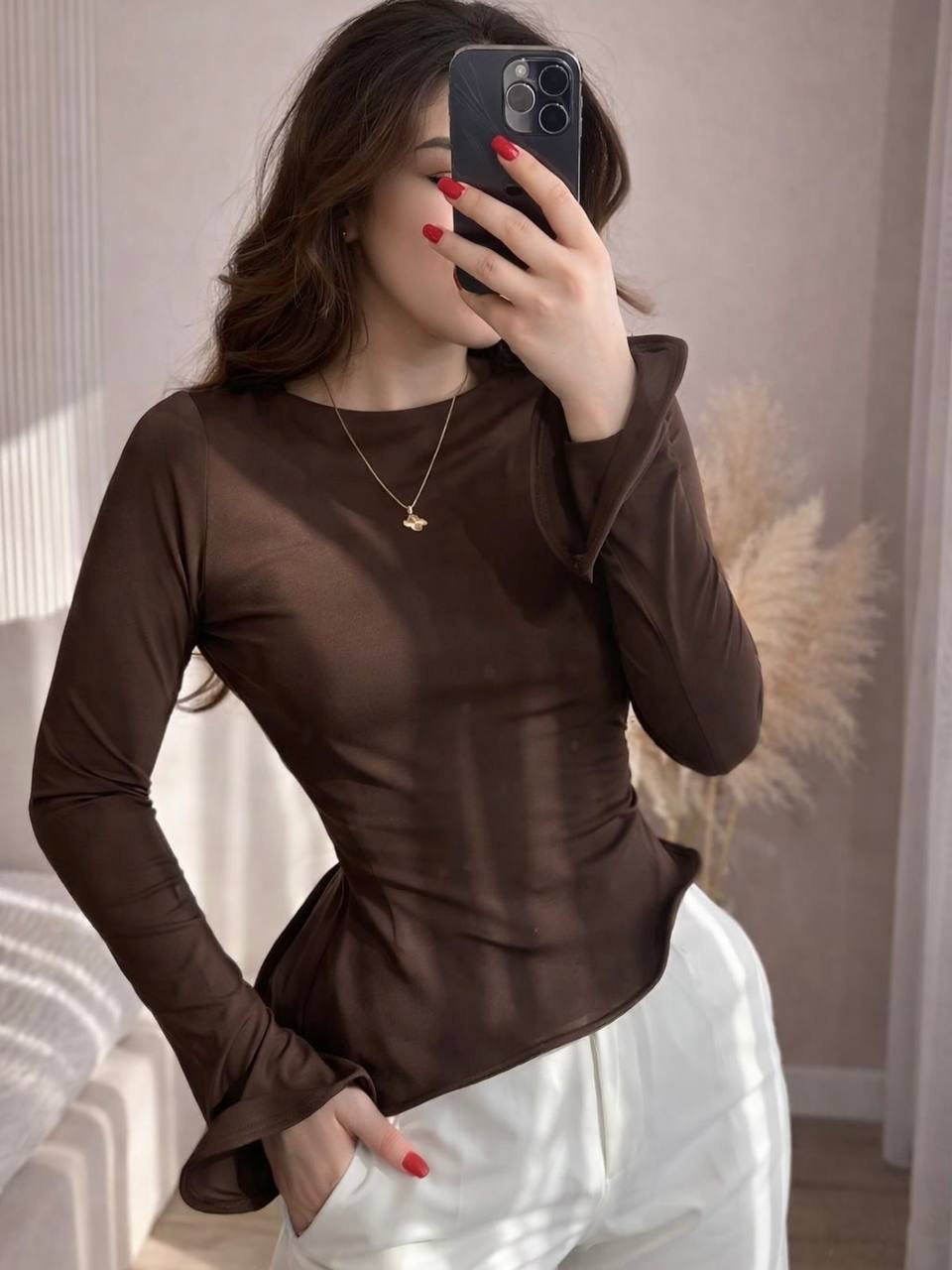 Эластичный трикотажный лонгслив (микродайвинг) шоколад