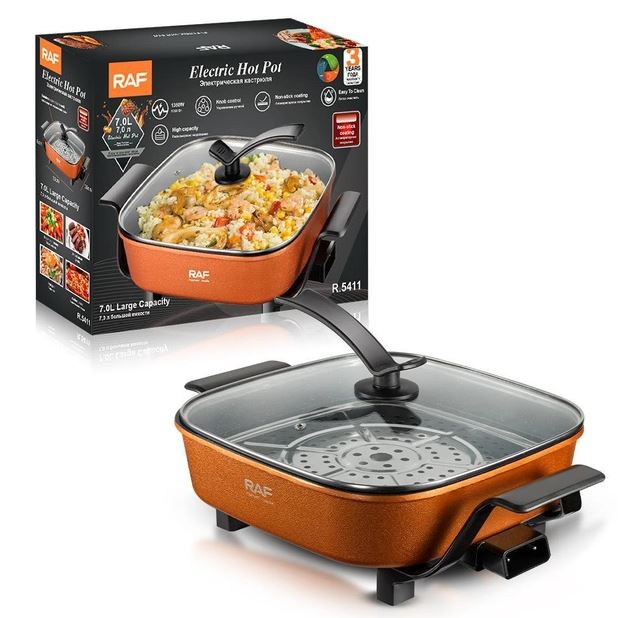 Электрическая сковорода с антипригарным покрытием RAF R.5411 представляет собой продуманное сочетание современного дизайна и функциональности. Уникальная конструкция устройства обеспечивает максимальное удобство в использовании и высокую эффективность при приготовлении блюд. Эргономичные элементы и стильный внешний вид делают сковороду незаменимым аксессуаром на вашей кухне.