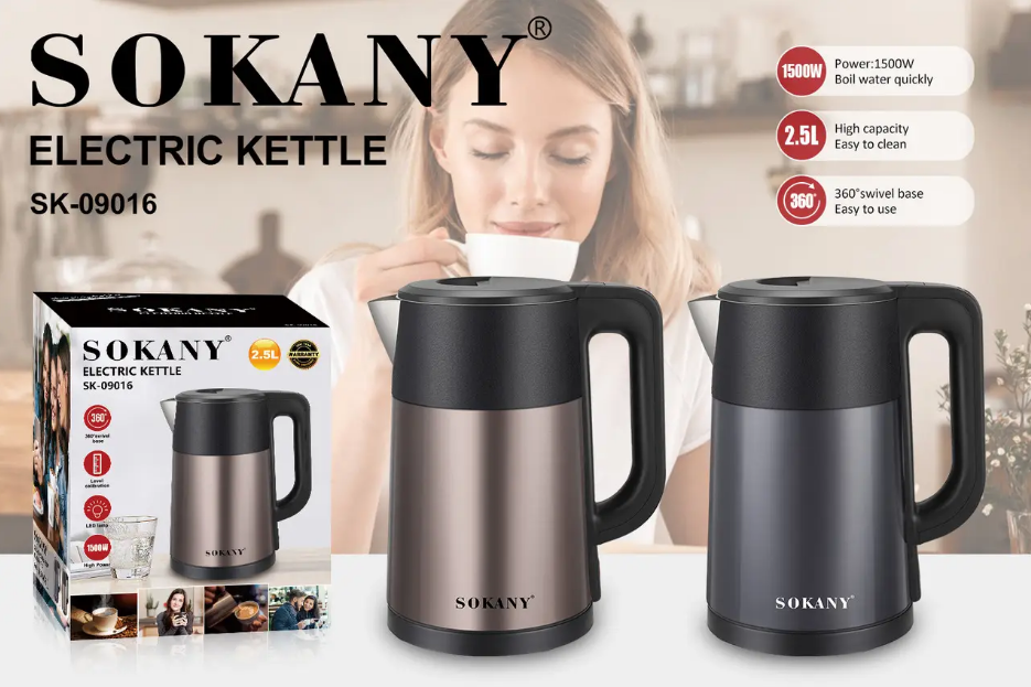 Этот чайник выполнен из материалов, которые обеспечивают его долговечность и привлекательный внешний вид, который идеально впишется в любой кухонный интерьер. Благодаря сочетанию современных технологий и стильного дизайна, электрочайник Sokany SK-09016 станет незаменимым помощником на вашей кухне.