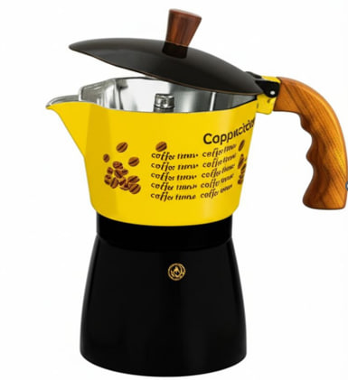 Стильная гейзерная кофеварка с удобной деревянной ручкой, рассчитанная на приготовление 3 чашек ароматного кофе.