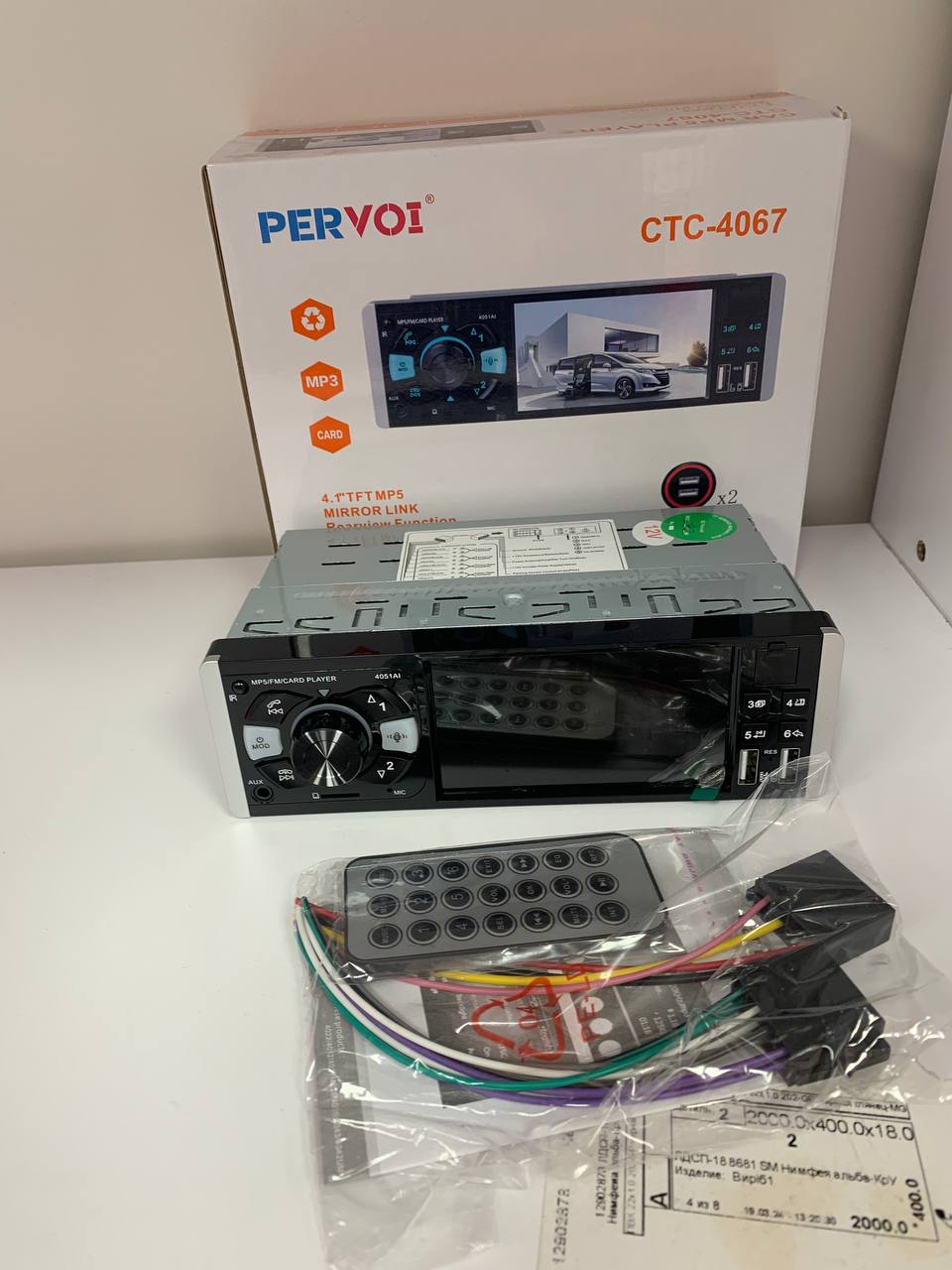 Автомагнитола PERVOI CTC-4067 +Bluetooth,с Двумя USB,4.1 Экран,Stereo на Базе MIRROR LINK
