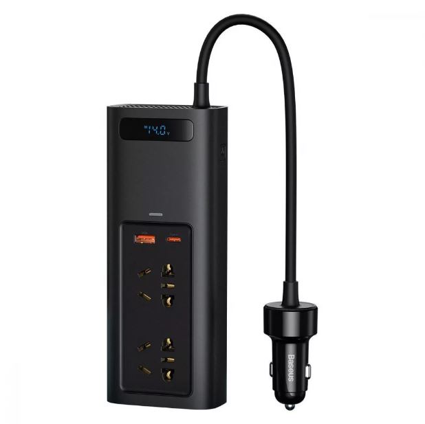Автомобильный инвертор Baseus Power Inverter 150W (220V CN/EU) 2 Розетки+USB+Type-C 5A с технологией QC3.0+PD3.0 с мощностью до 150W поможет осуществить питание Вашего устройства: смартфона, планшета или ноутбука. Аксессуар имеет технологию интеллектуального распознавания требуемого напряжения для различных устройств и безопасную зарядку. Продукт используется для питания электрических устройств, требующих 220 В переменного тока от аккумуляторов и автомобильных установок с 12 В постоянного тока.