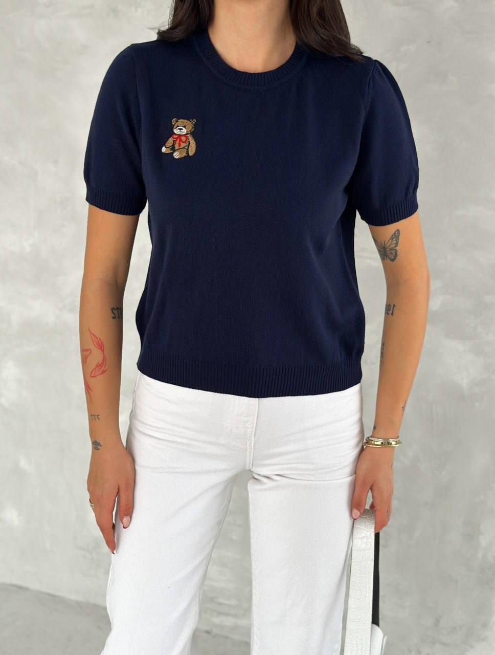 Головна » Магазин » ОДЕЖДА » ФУТБОЛКИ МАЙКИ » Базовая Футболка с коротним рукавом и мелким принтом мишки темно синий